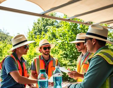 Beat the Heat: Schedule outdoor tasks for cooler morning hours and take breaks in shaded or air-conditioned spaces when possible. Use the buddy system for outdoor work—check on colleagues and yourself regularly.